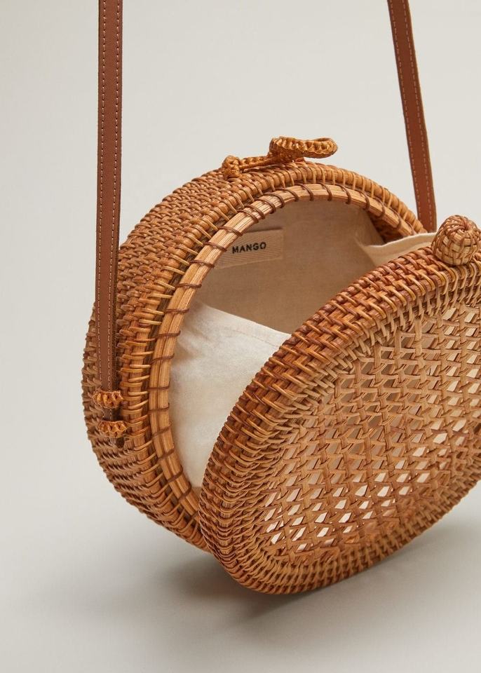 Bolso Redondo de Ratán Tejido a Mano con Asas Circulares - Bolso Tote de Mimbre Natural con Panel de Tejido de Caña