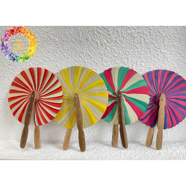 Ventilador Redondo Tejido a Mano para el Verano, Artesanía Tradicional de Bambú y Pasto Marino con Hoja de Palma de Vietnam para Decoración