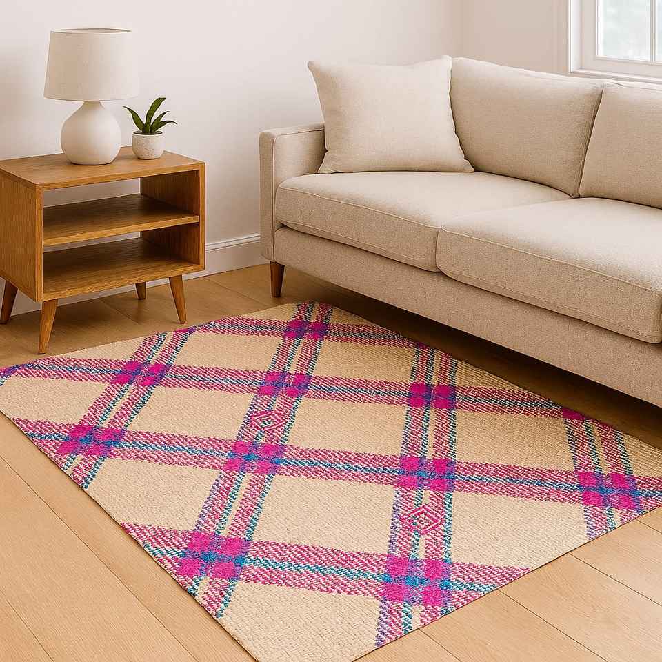 Alfombra Tejida a Mano con Diseño Geométrico Bohemio, Estilo Sheetal Pati, Ecológica y Natural, con Pelo Mediano de 3-5mm de Grosor, Bangladesh
