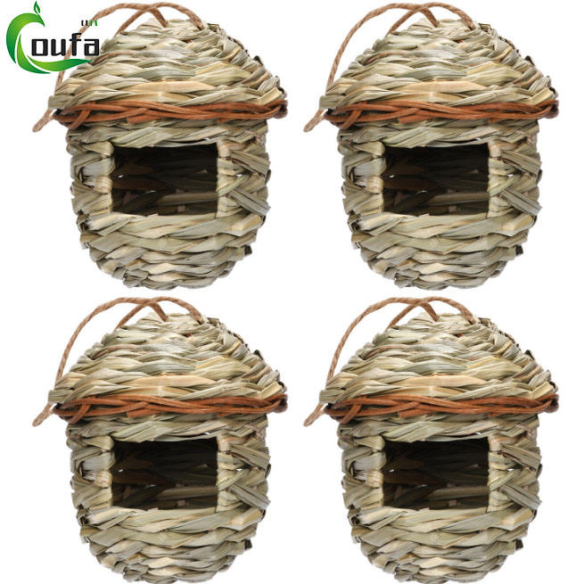 Nido de pájaro de paja tejido a mano con patrón sólido para la incubación y cría de loros, suministro para jardín, casa para colibríes en el césped