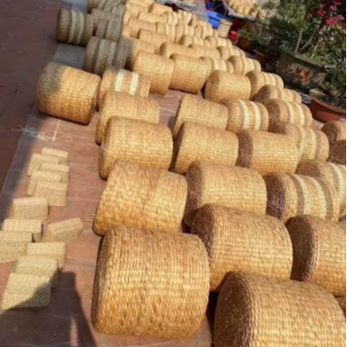 Otomano de jacinto de agua tejido a mano con acabado natural para decoración del hogar y uso de asientos