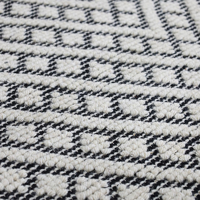 Alfombra Dhurrie de lana tejida a mano con suelo de algodón de color contrastante con patrón geométrico con tejido texturizado elevado