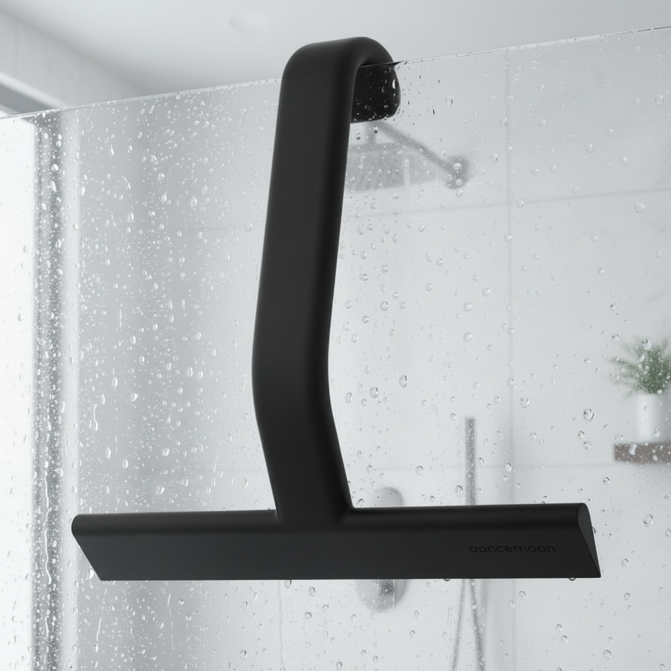 Escobilla de Ducha Colgante de Silicona de una Pieza con Gancho Integrado de 25 cm, Negra