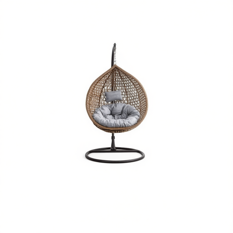 Silla Colgante de Ratán con Estructura de Hierro, Cojín Gris, Silla Moderna de Descanso para Sala de Estar