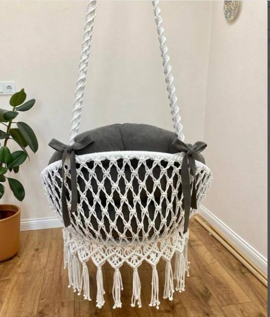 Hamaca colgante de macramé de algodón, silla hamaca de macramé superventas, columpio redondo de macramé