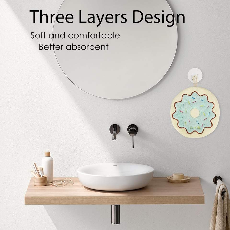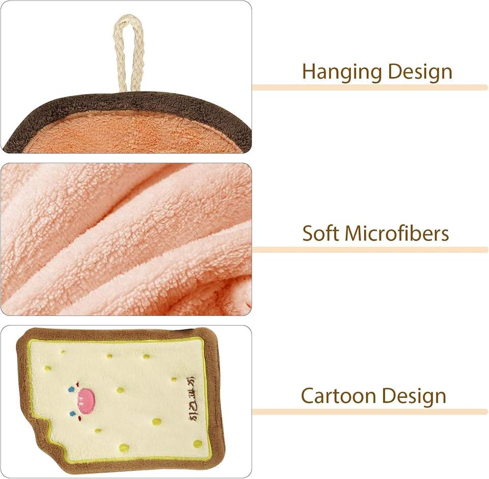Toallas de Mano Colgantes para Cocina/Baño, de Terciopelo Coral Suave y Absorbente, con Divertidos Diseños de Comida: Donut, Tostada y Queso