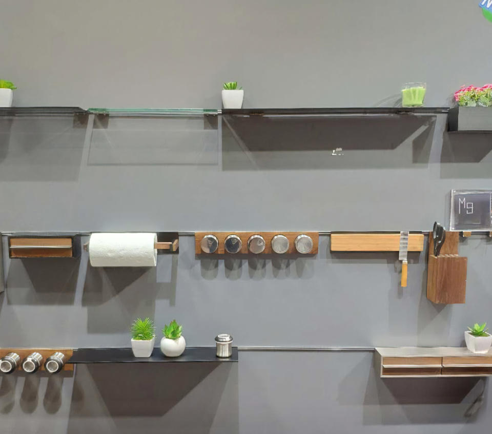 Estante de cocina colgante de aluminio, Sistema de barandilla de almacenamiento montado en la pared, contra salpicaduras de medio camino para una práctica organización de utensilios de cocina