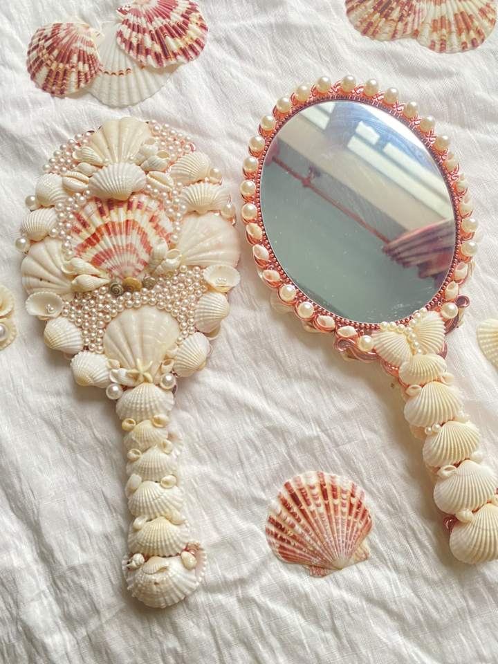 Espejo colgante Nueva colección Pequeño espejo de mano de concha marina DIY Muchos diseños personalizados de Loto Azul
