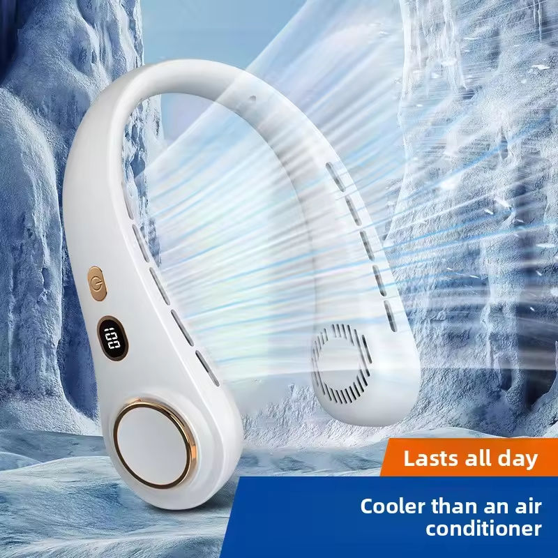 Enfriador de cuello inteligente con pantalla, carga USB, turbina de flujo de aire, flexible, silencioso, portátil para deportes y correr