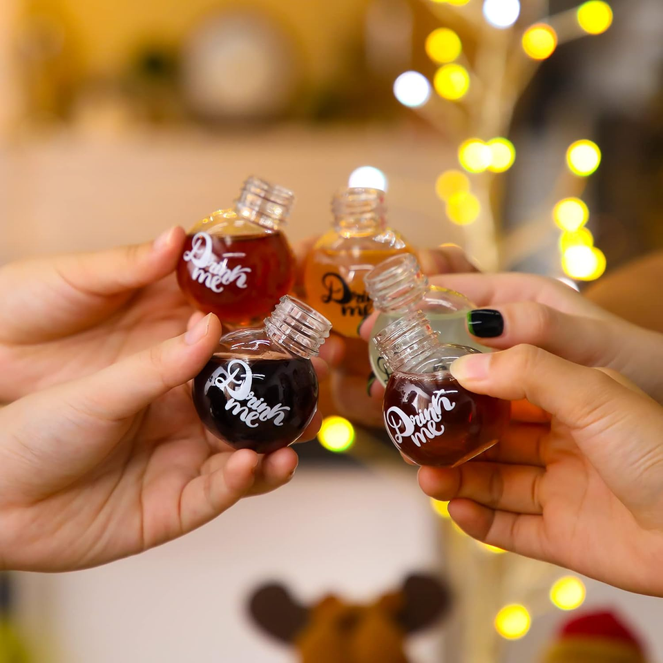 Colgante Claro 50ml Bebida de jugo Botella para mascotas Adorno Bola de Navidad de plástico llena de brillo