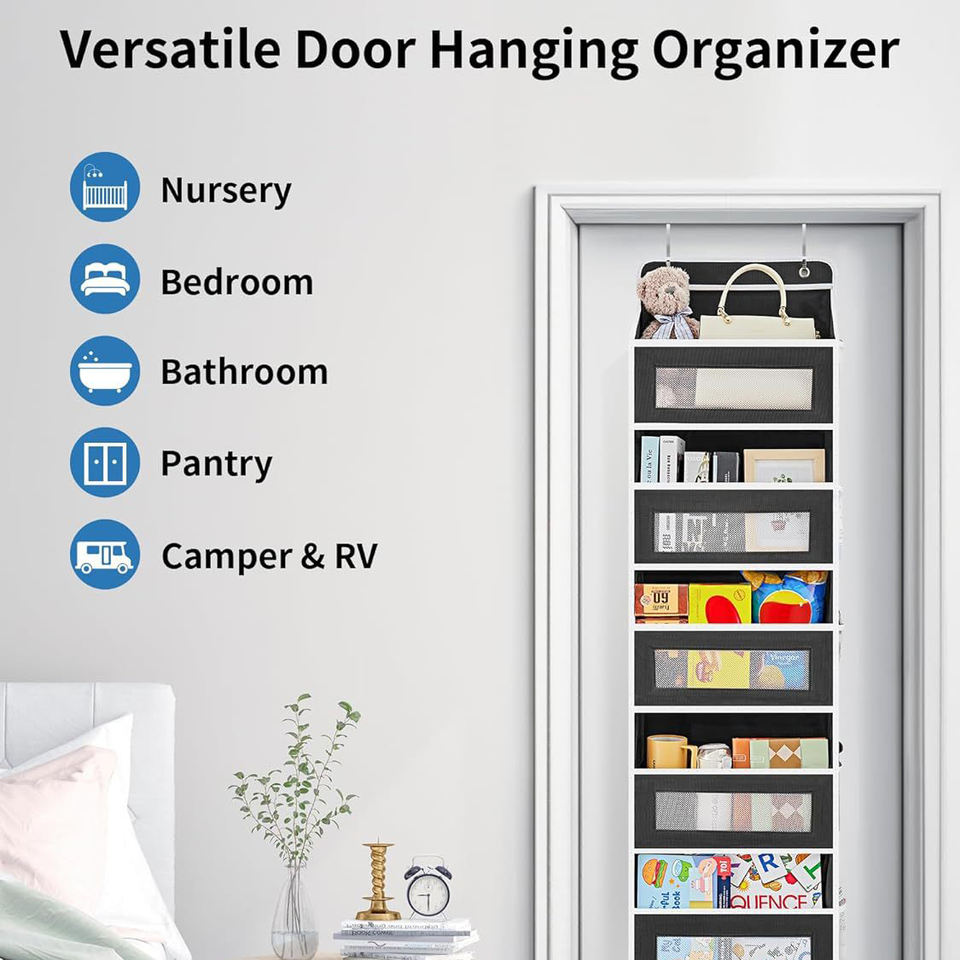 Organizador de bolsa de almacenamiento colgante con ventana para sala de estar, dormitorio, hogar, organizador de almacenamiento sobre la puerta