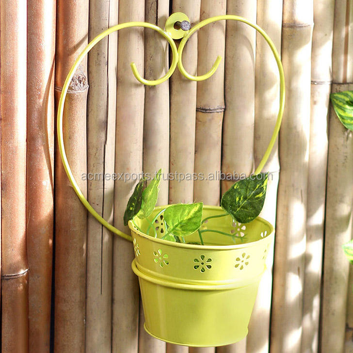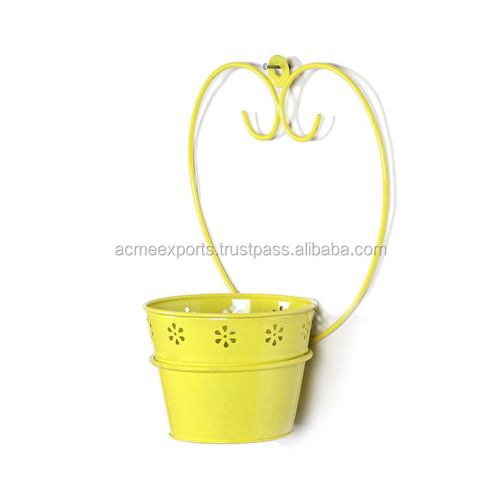 Maceta de pared de metal forjado de nuevo diseño Maceta y macetas colgantes amarillas