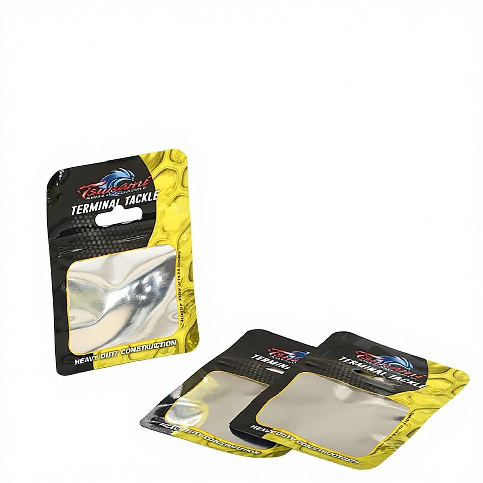 Bolsas de Mylar con Cierre Hermético Personalizadas de Haodong Packing, Bolsas de Plástico Transparente para Aparejos de Pesca, para Anzuelos de Pesca, con Orificio Euro