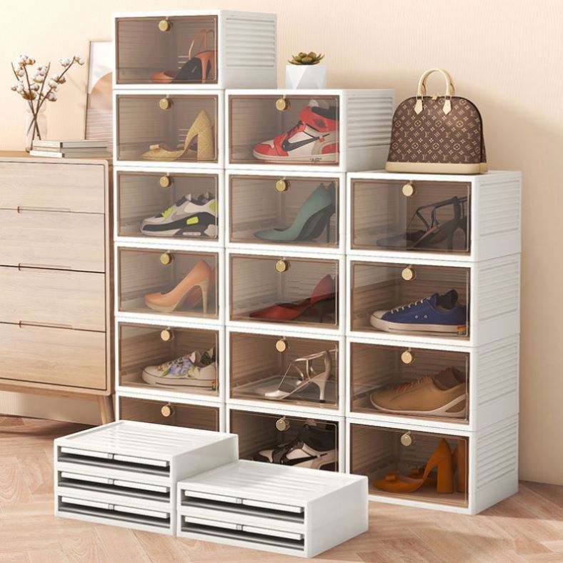 Caja de zapatos de plástico al por mayor Haogle, caja ciega apilable, caja de almacenamiento, combinación DIY, caja de zapatos de plástico plegable