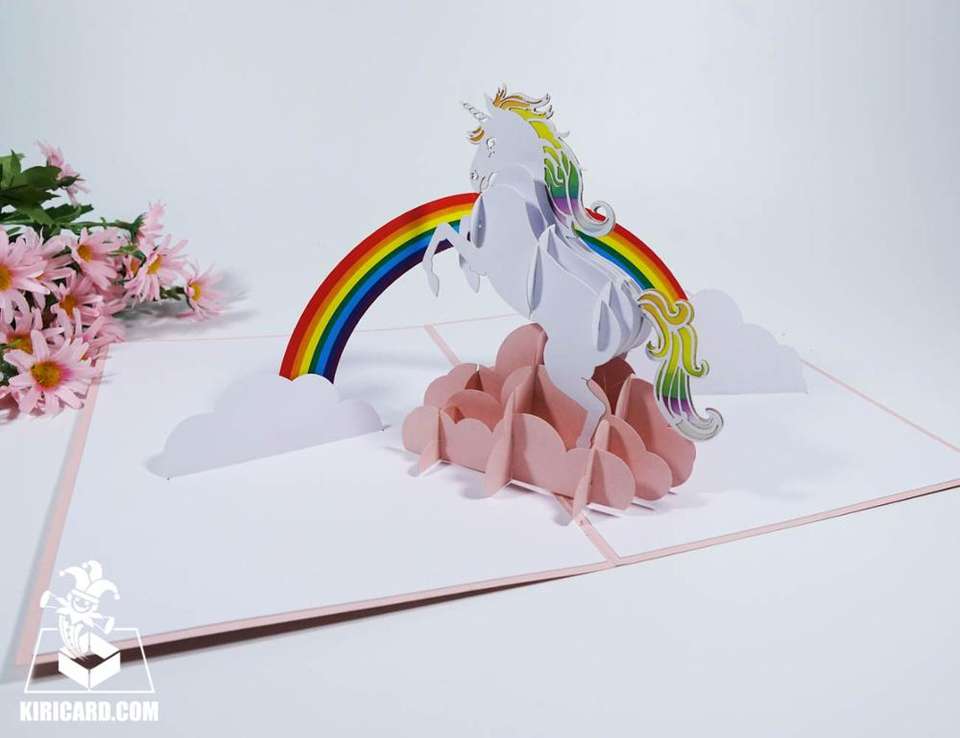 Tarjeta de Felicitación de Cumpleaños 3D, Artesanía Personalizada, Tarjeta Pop-up de Unicornio Arcoíris de Hadas, Fabricante Mayorista Vietnamita