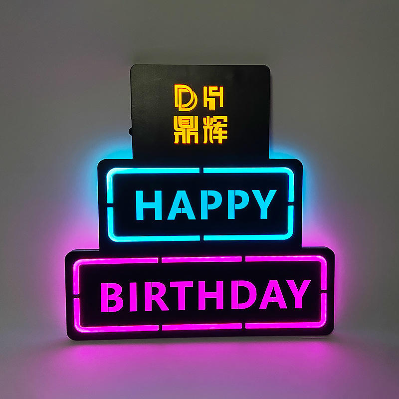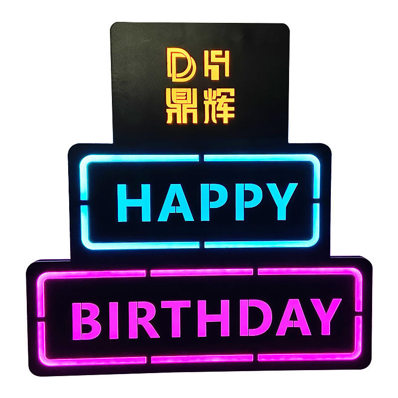 Letrero Luminoso de Feliz Cumpleaños con Forma de Pastel, Decoración LED de Neón para Fiestas, Bares, KTV y Eventos