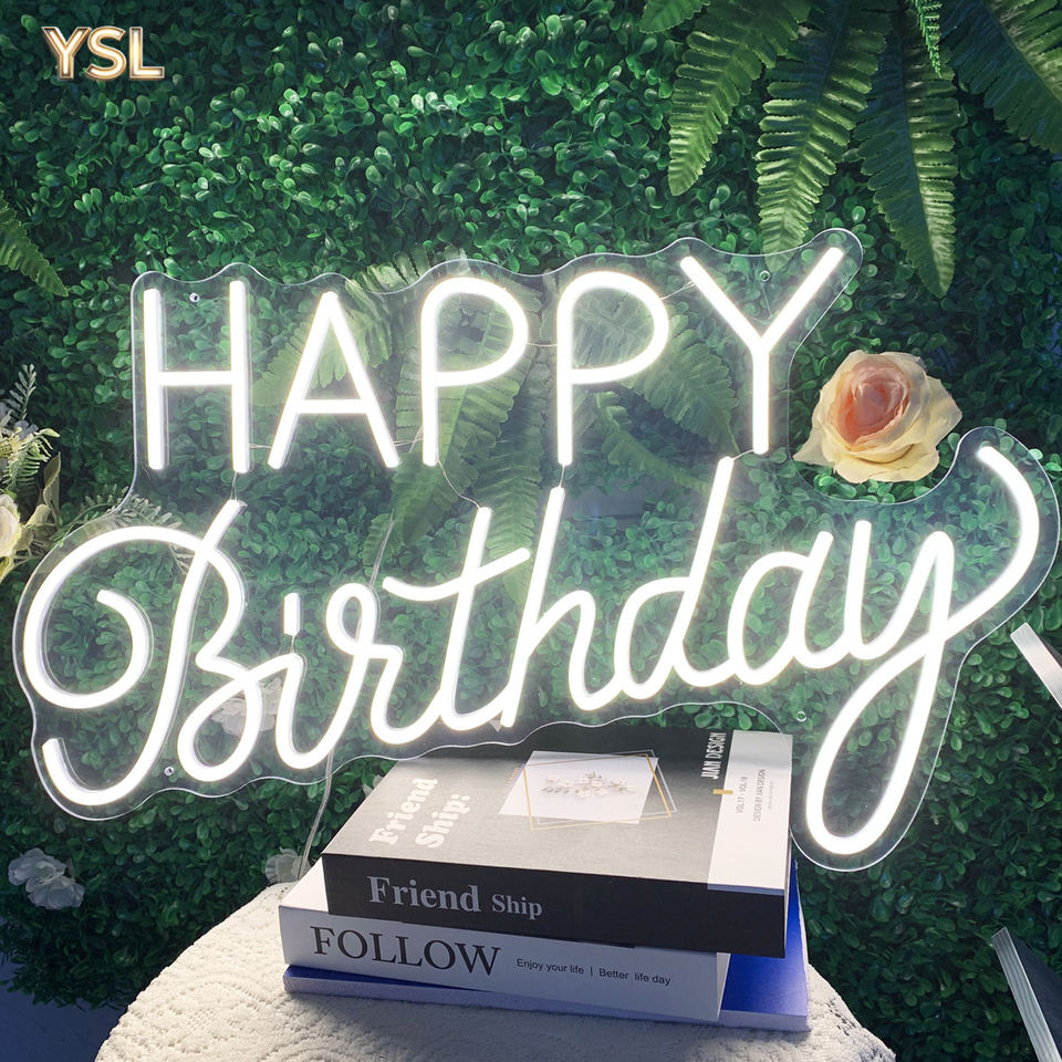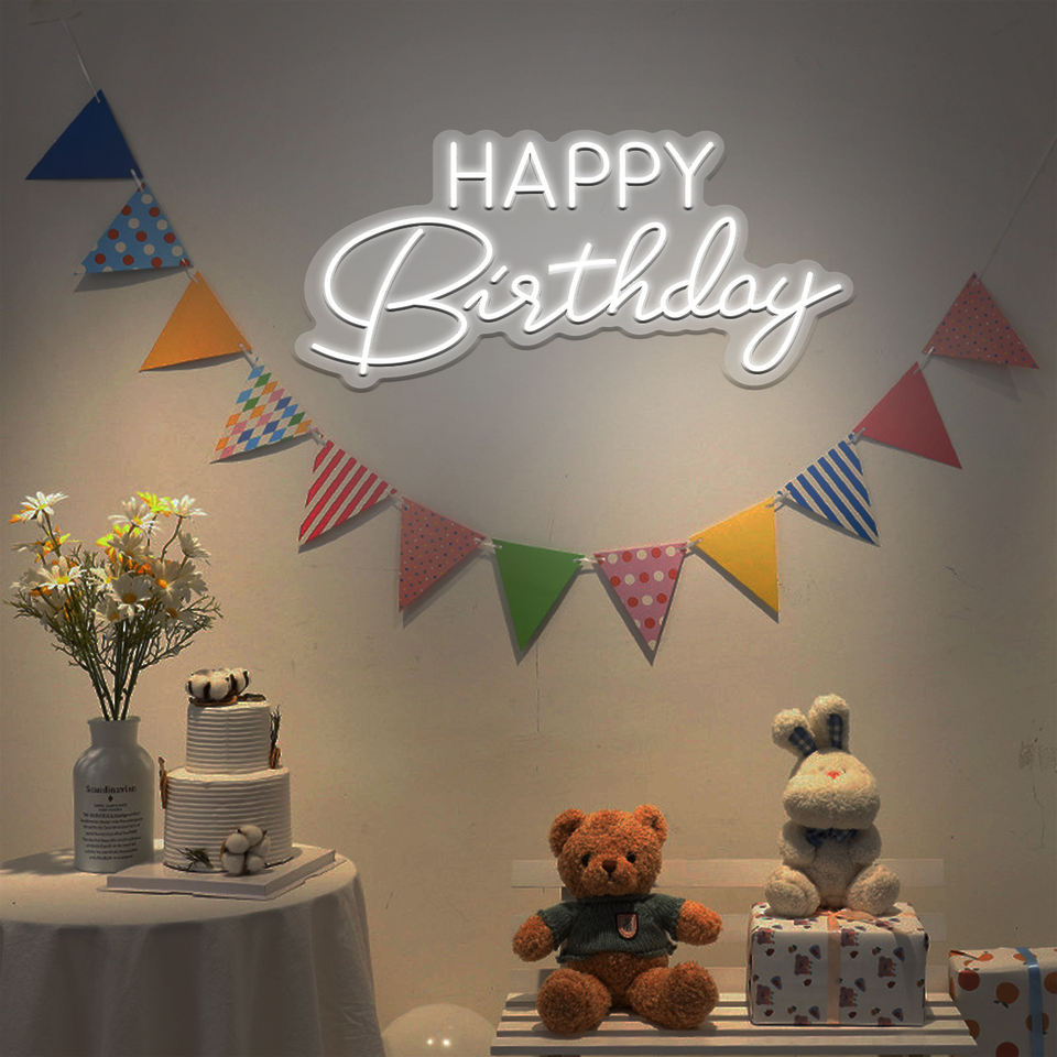 Letras de Neón de Feliz Cumpleaños, Material ABS, Luces de Neón para el Hogar, Oficina, Fiestas de Cumpleaños, Decoración de Habitaciones Infantiles, Alimentación CA/CC