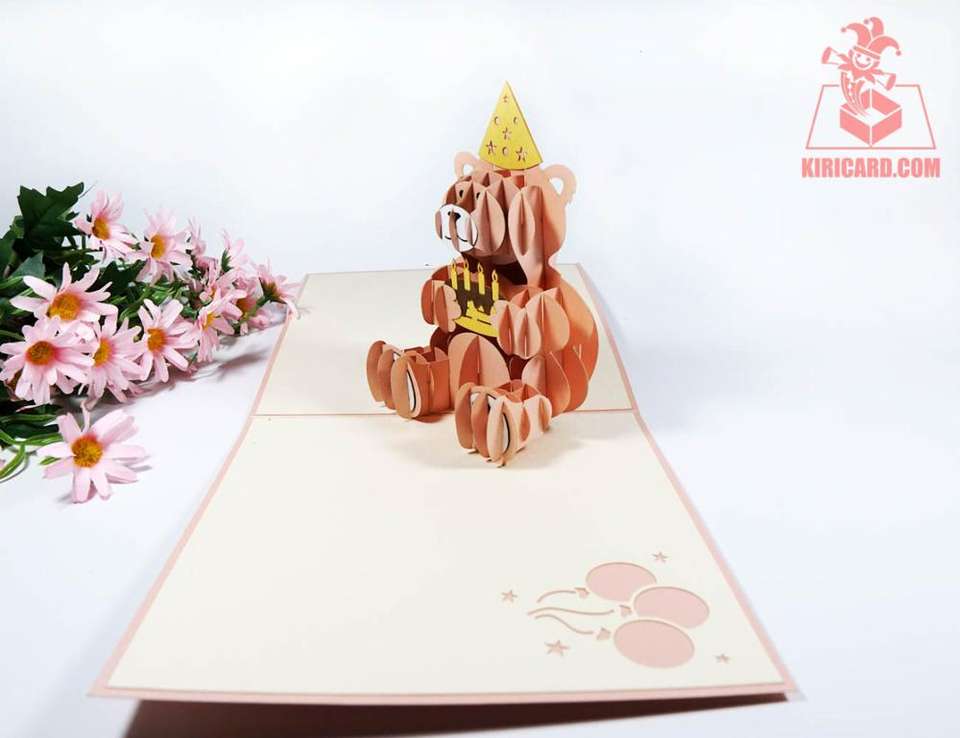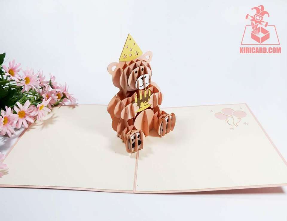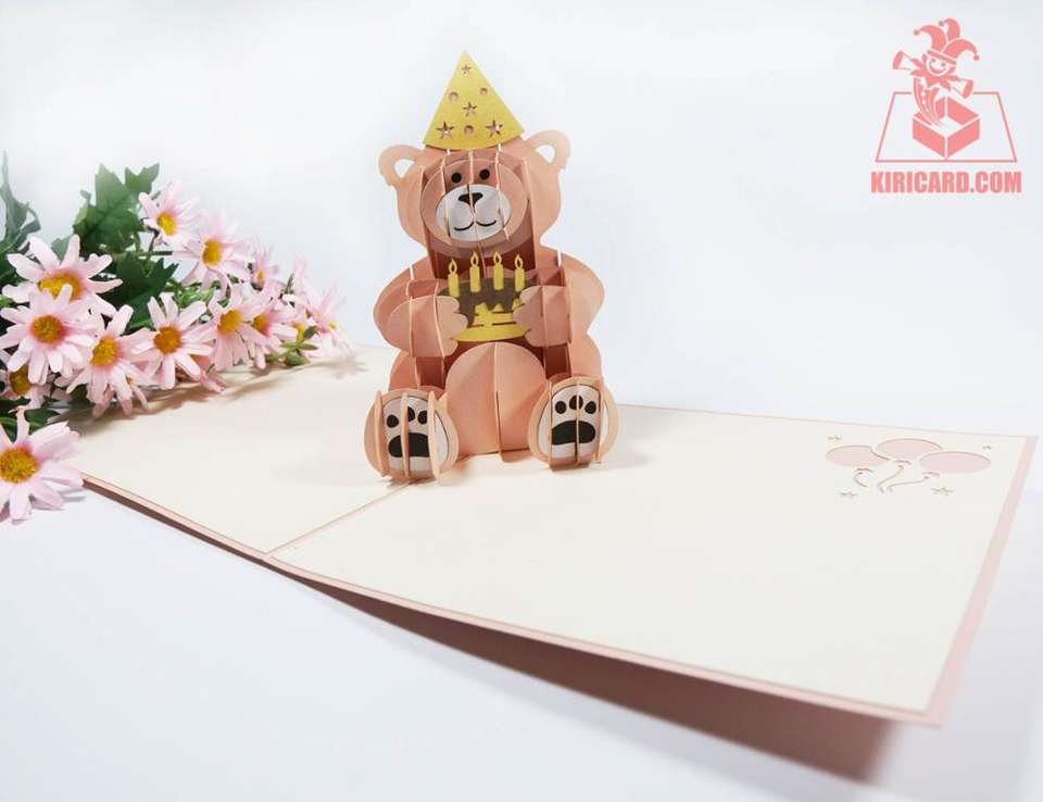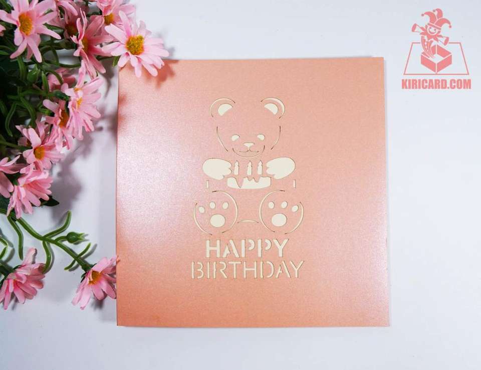 Nombre:Tarjeta emergente del oso del feliz cumpleaños (rosa)