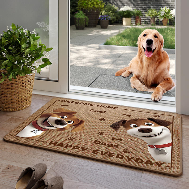 Tapete para Perros Happy Dog, Rectangular, Antideslizante, con Estampado Animal, para Entrada de Casa, Resistente a las Manchas, de Fibra de Poliéster