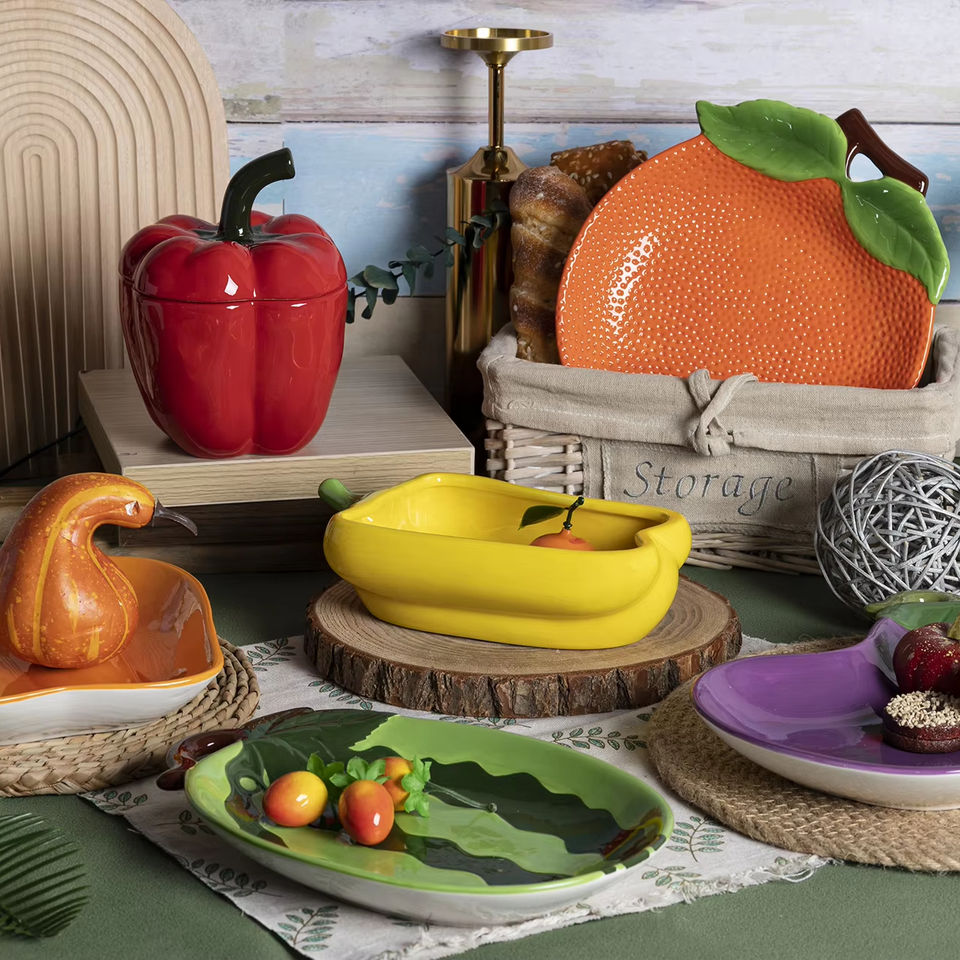 Platos de bistec de cerámica artística Happy Go, diseños de frutas vegetales exóticos, estilo creativo para comidas diarias, fiestas en casa para hoteles