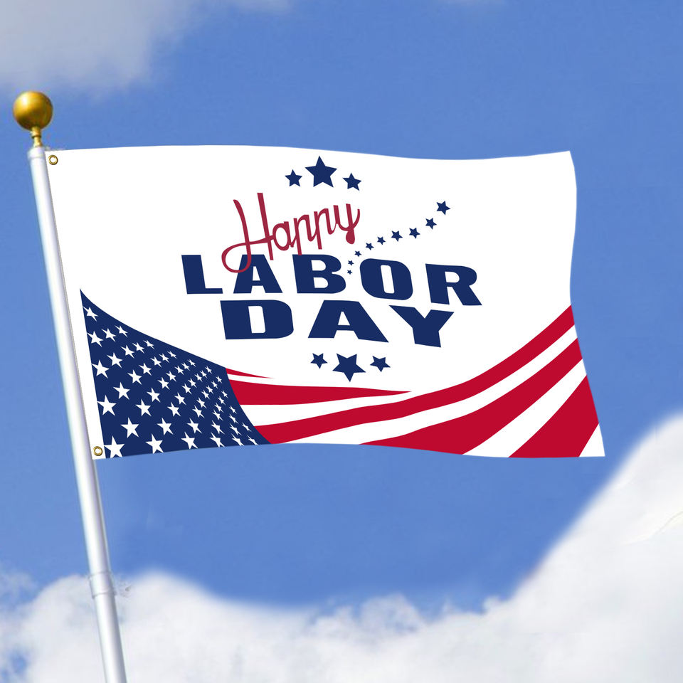 Feliz Día del Trabajo bandera decorada ambiente festivo decoración al por mayor personalizado 3x5 pies fibra de poliéster entrega rápida