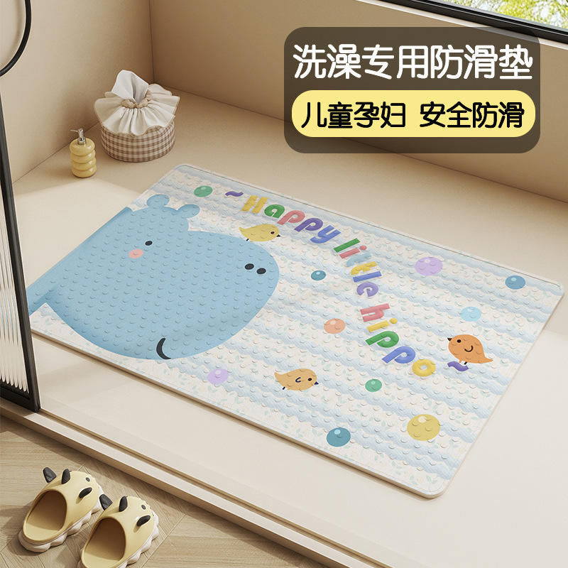 Alfombra de Baño de PVC con Diseño de Hipopótamo, Rectangular, Antideslizante, para Niños, Ducha, Inodoro