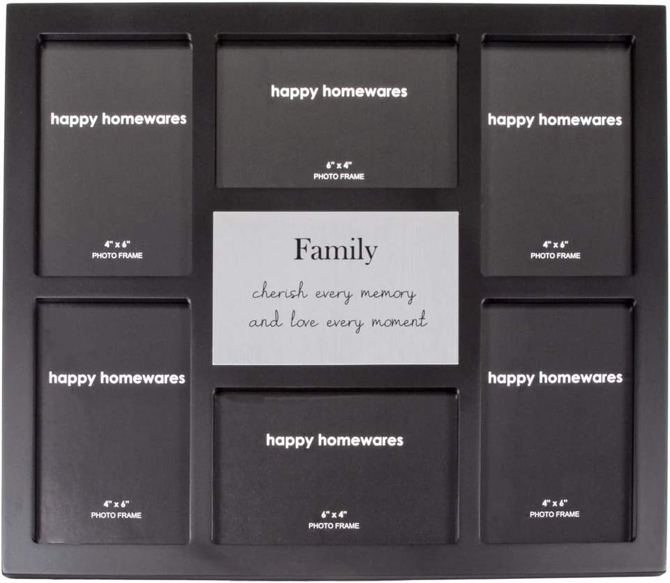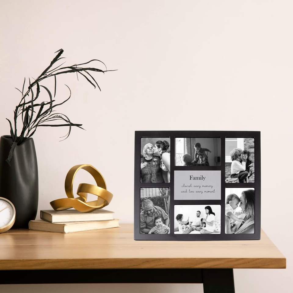 Marco de Fotos Moderno Negro con Múltiples Fotos y Frases Familiares, con la Frase 'Cosecha Cada Recuerdo'