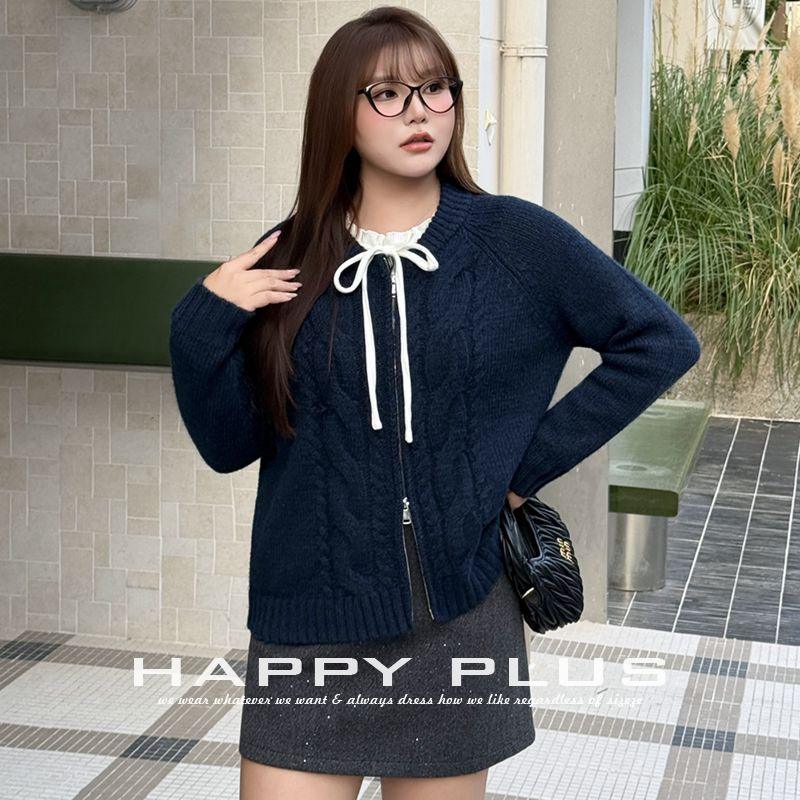 Cárdigan de Punto Trenzado Happy Plus para Mujer, Talla Grande, Otoño Invierno, Estilo Universitario Británico, Lana Sintética de Alpaca, Grosor Medio
