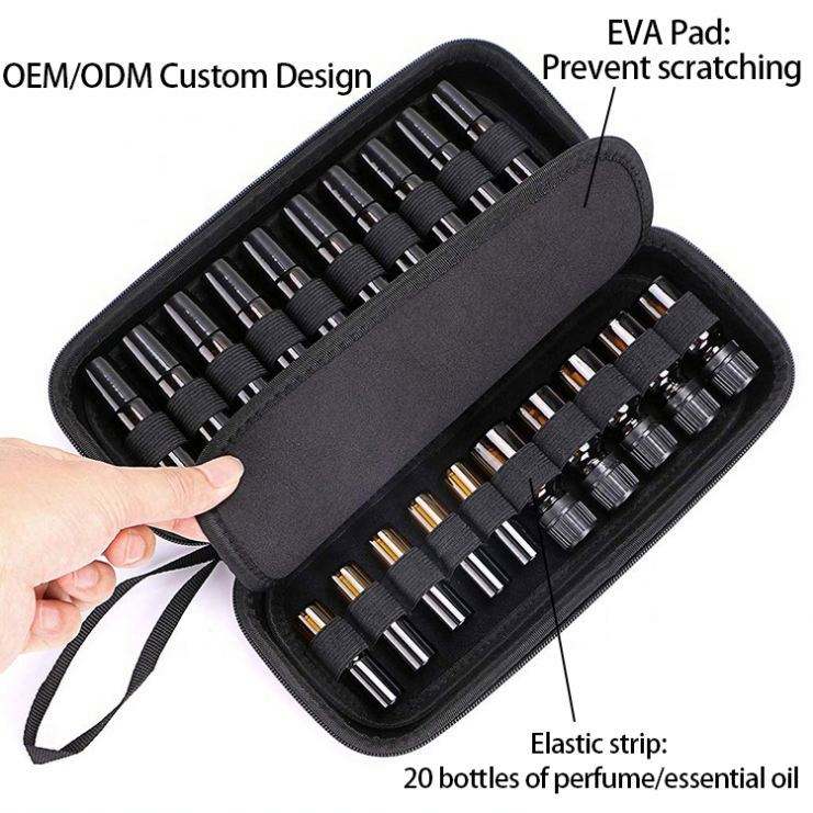 Estuche Rígido para Aceites Esenciales, Bolsa Organizadora para Ampollas y Tubos, Estuche de Viaje para Botellas, Bolsa para Muestras de Perfume con Correa de Mano