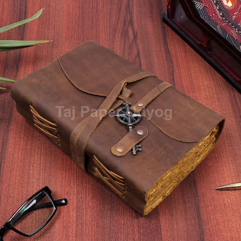 Diario de Tapa Dura con Cierre de Correa y Llave, Papel con Borde Deshilachado Estilo Antiguo, Diario de Cuero Vintage, Juego de Cuadernos Encuadernados a Mano