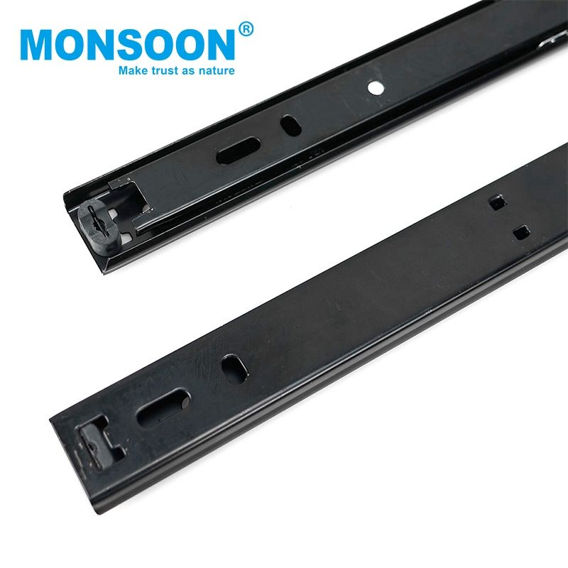 Fabricante armario de cocina montaje rodamiento deslizante hardware dos pliegues negro 27mm cajón diapositivas