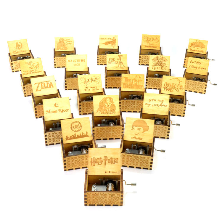 Nombre del producto:Caja de música personalizada de manivela de madera grabada con láser