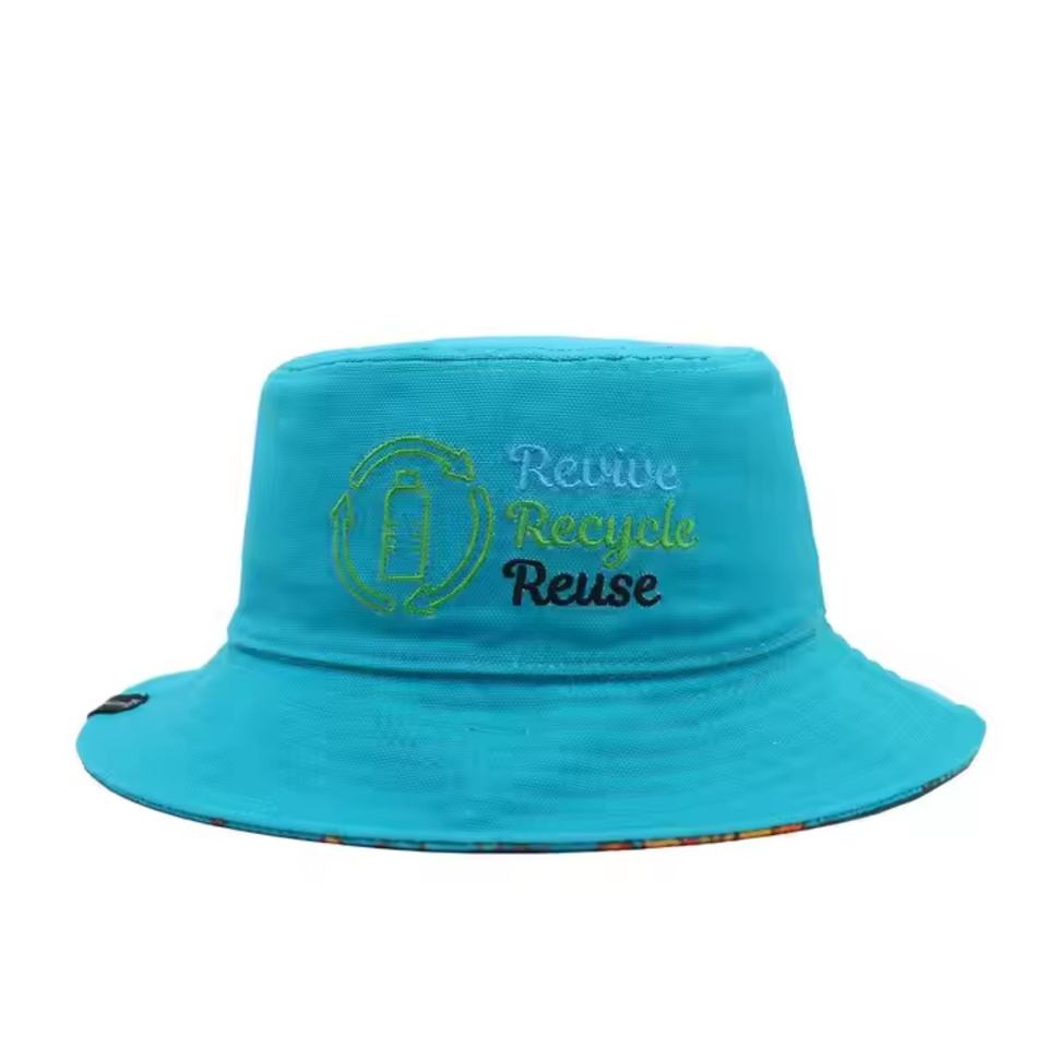 Sombrero de Pescador Ecológico Personalizado Azul Reversible Unisex con Logotipo Bordado, Protección Solar Impermeable para Ciclismo Diario