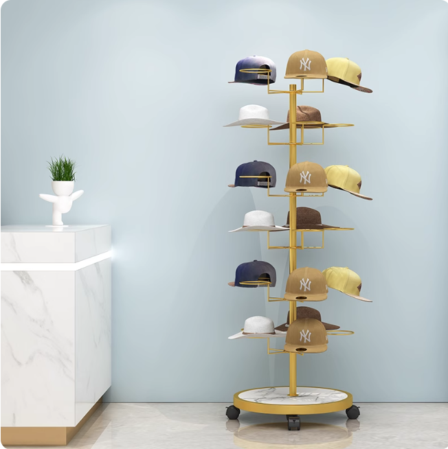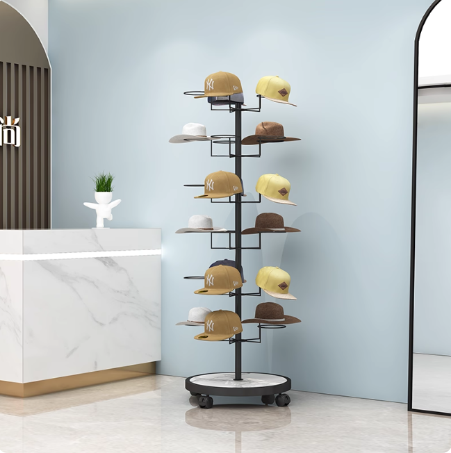 Exhibidor Giratorio para Sombreros, Exhibidor de Sombreros de Pie, Exhibidor de Sombreros con Ruedas de Metal, Exhibidor de Sombreros Personalizado