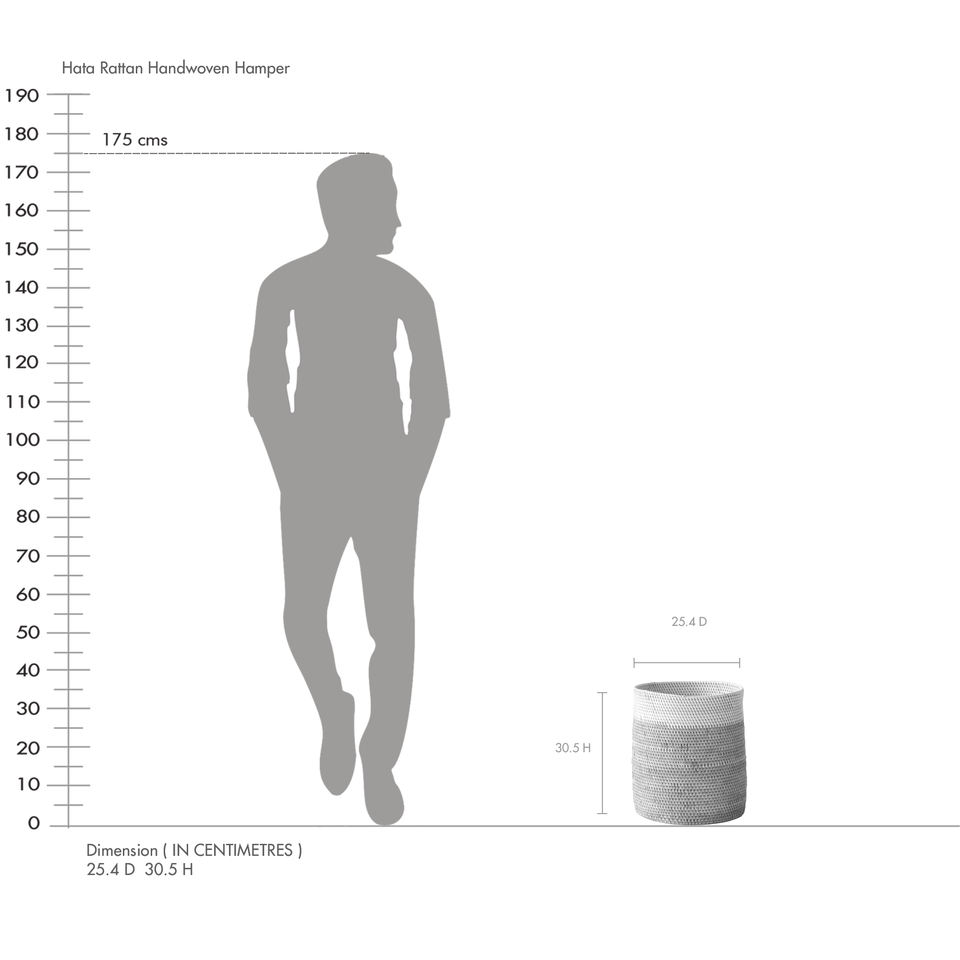 Hata Rattan Hamper-(Natural+White): 30.48cm H x 25.4cm DiameterSIZE