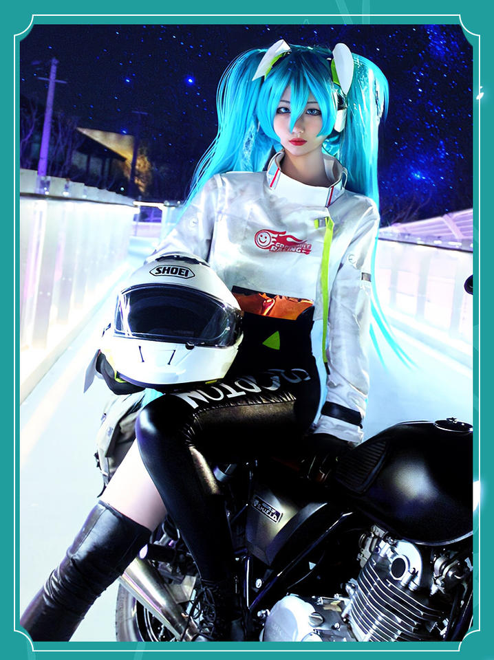 Disfraz de Cosplay de Hatsune Miku, Traje de Carreras de Fórmula, Top de Algodón, Traje de Animación, Conjunto de Actuación, Impresión Digital para Mujer Adulta
