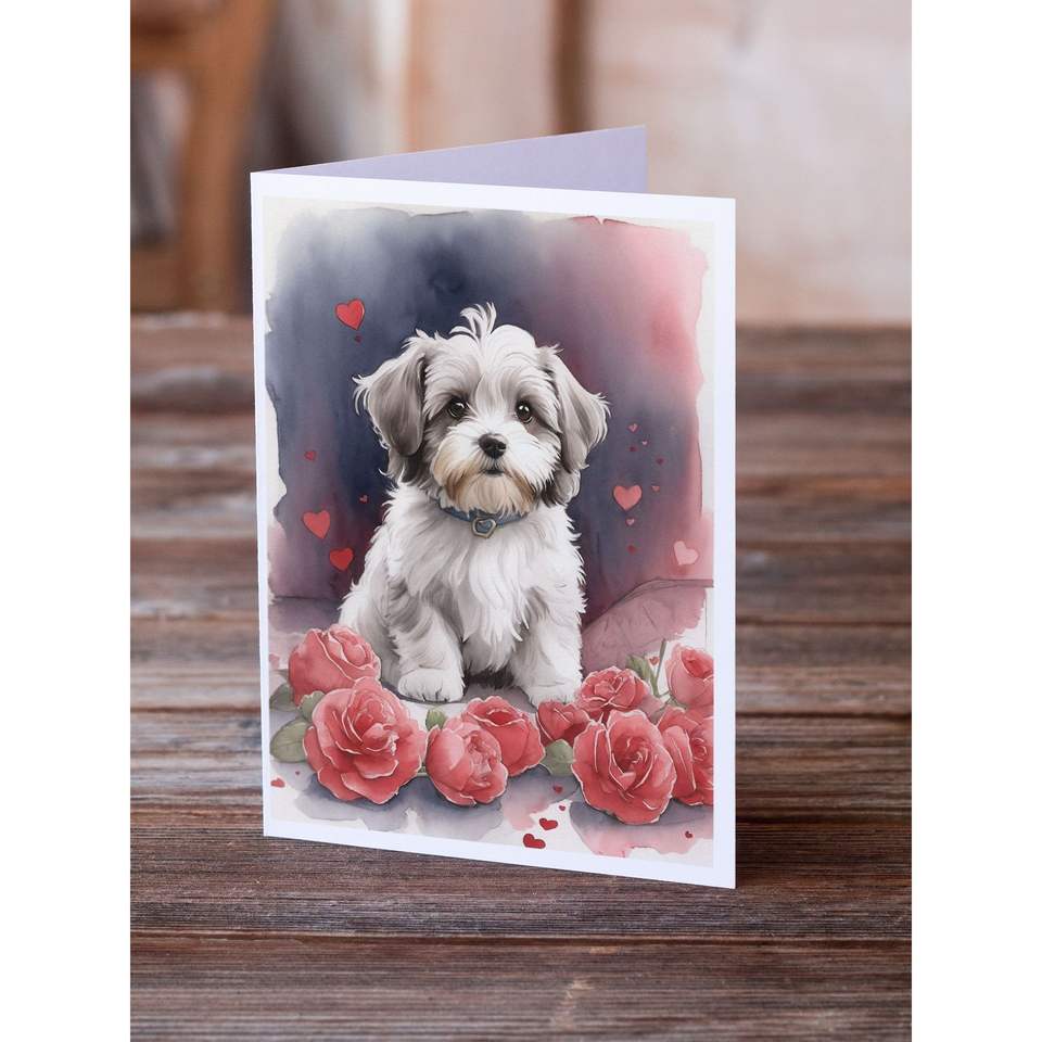 Havanese Valentine Roses A7 Tamaño 5x7 Tarjetas de notas en blanco Paquete de 8 tarjetas de felicitación caprichosas con sobres