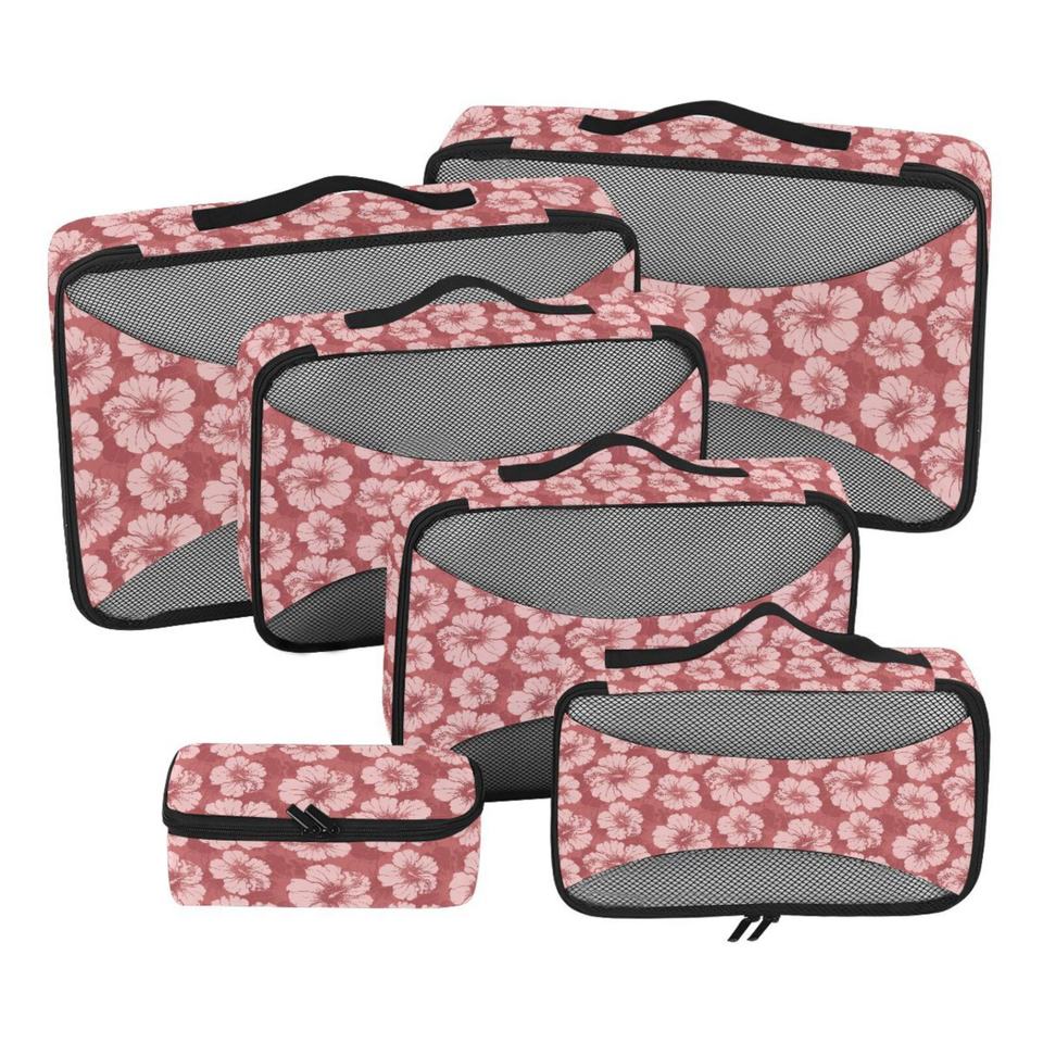Juego de 6 Organizadores de Equipaje con Diseño de Hibisco Hawaiano, Personalizables, Cubos de Embalaje para Viaje, Bolsas de Compresión para Maletas