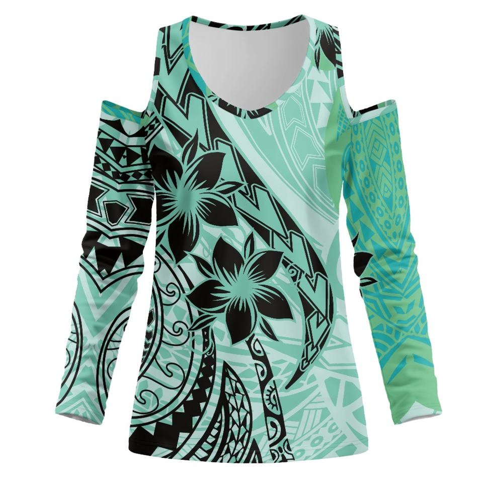 Blusas hawaianas verdes elegantes diarias de talla grande para mujer, camisa y blusa sexy tribal Polinesia con hombros descubiertos, camisetas personalizadas