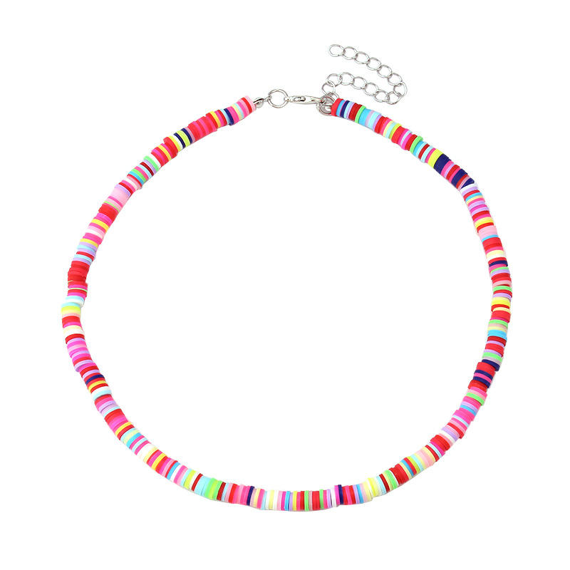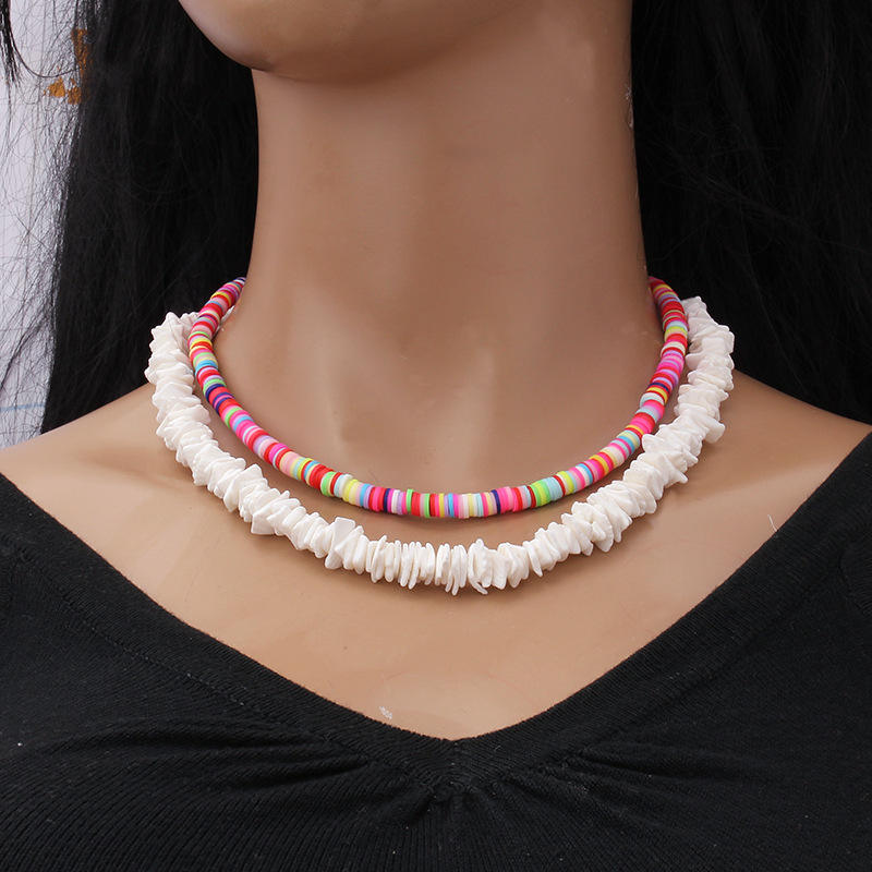 Collar de Fragmentos de Concha Irregulares Estilo Hawaiano, Cadena de Moda de Arcilla Polimérica Colorida, con Capas Blancas y Arcoíris
