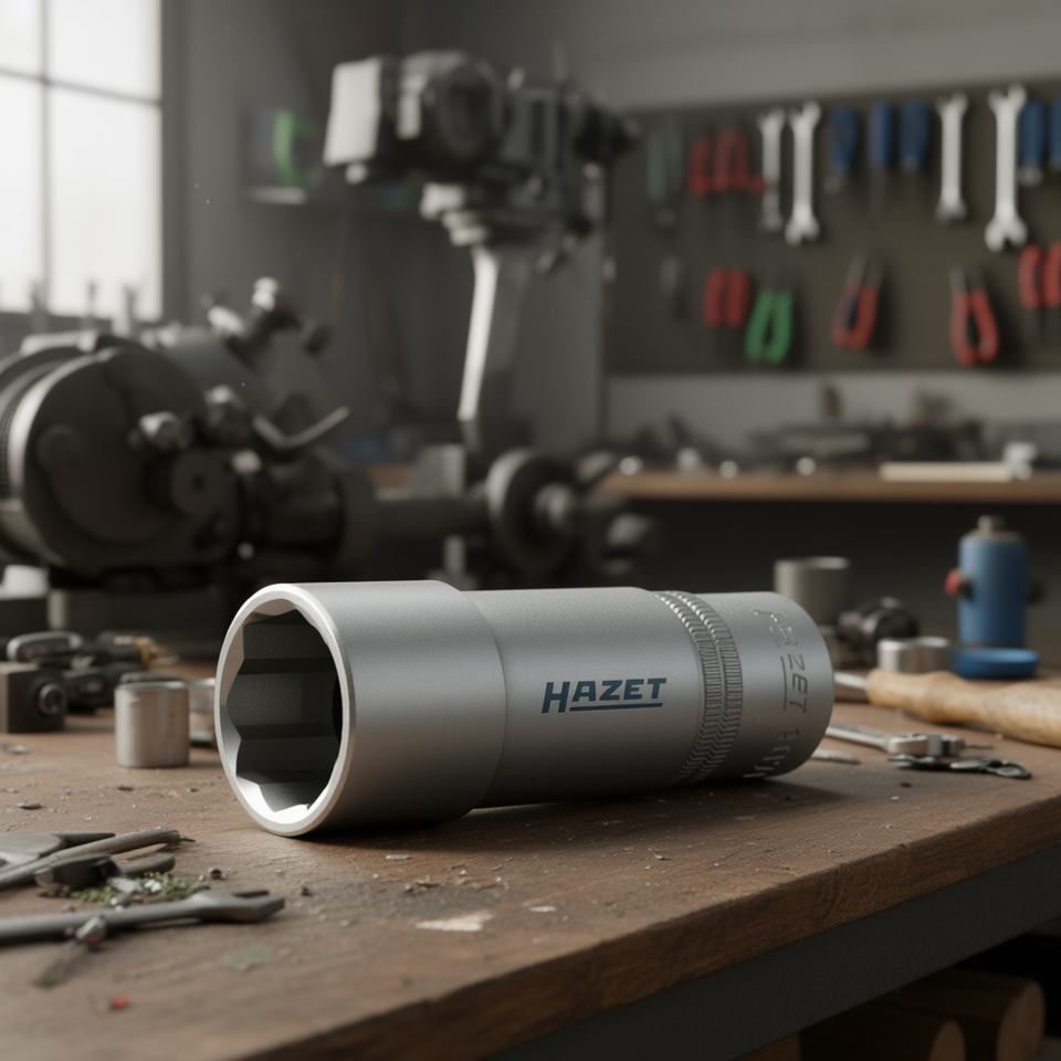Llave de vaso cuadrada larga de 12 puntas Hazet de 1/2'' con perfil de tracción y moleteado