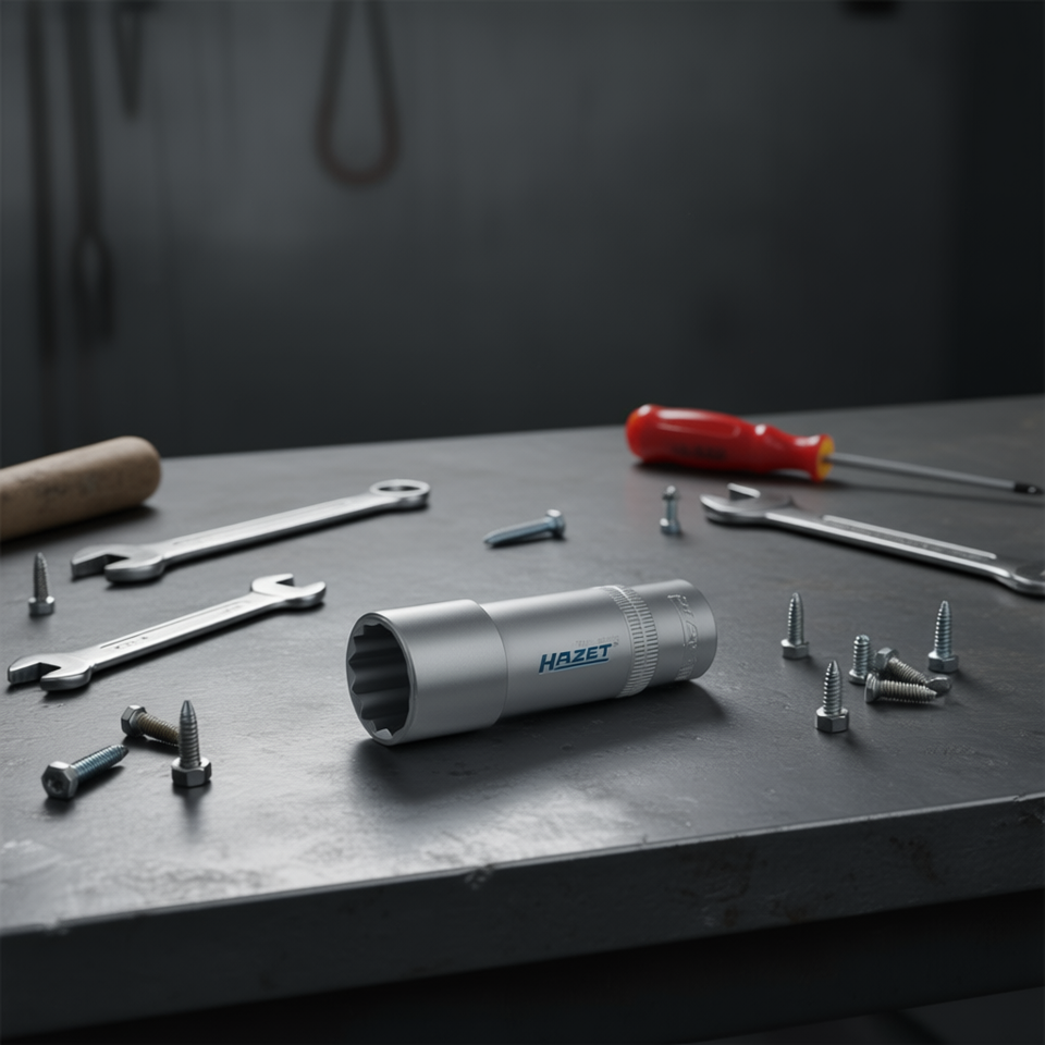 Llave de vaso cuadrada larga de 12 puntas Hazet de 1/2'' con perfil de tracción y moleteado