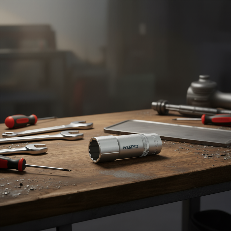 Llave de vaso cuadrada larga de 12 puntas Hazet de 1/2'' con perfil de tracción y moleteado