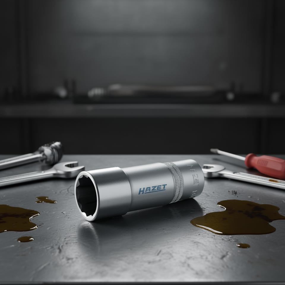 Llave de vaso cuadrada larga de 12 puntas Hazet de 1/2'' con perfil de tracción y moleteado