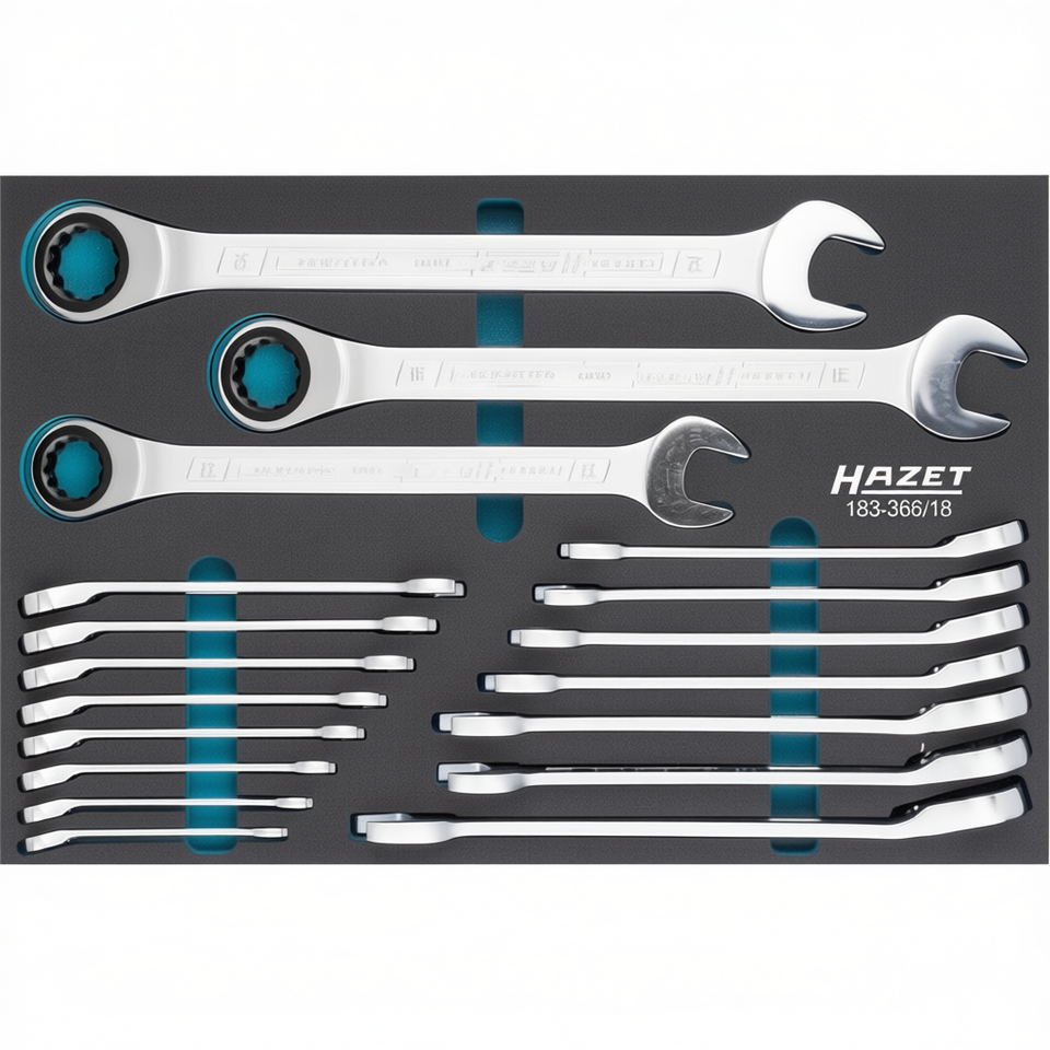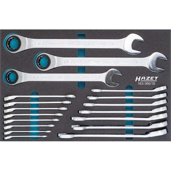 Juego de Llaves Combinadas con Trinquete Hazet de 18 Piezas