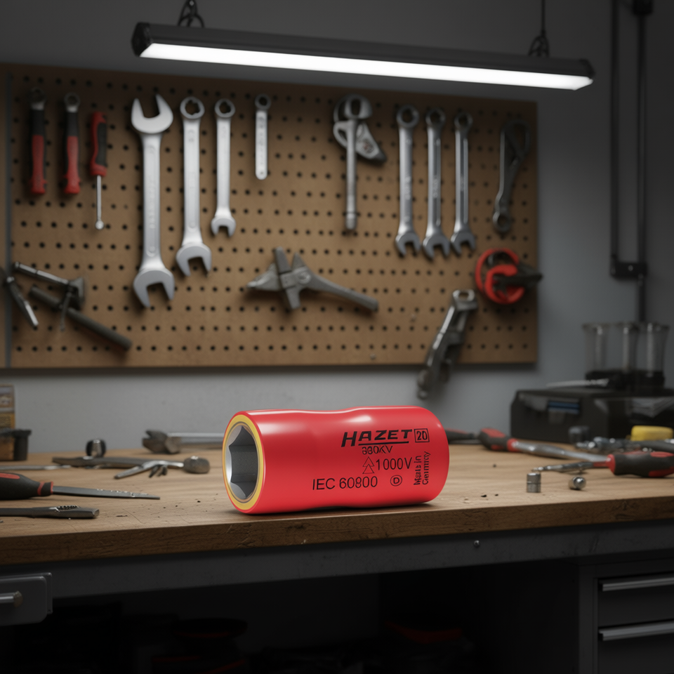 Llave de vaso hexagonal corta de 6 puntas Hazet, métrica, de 3/8'' con perfil de tracción y aislamiento protector de 1000V