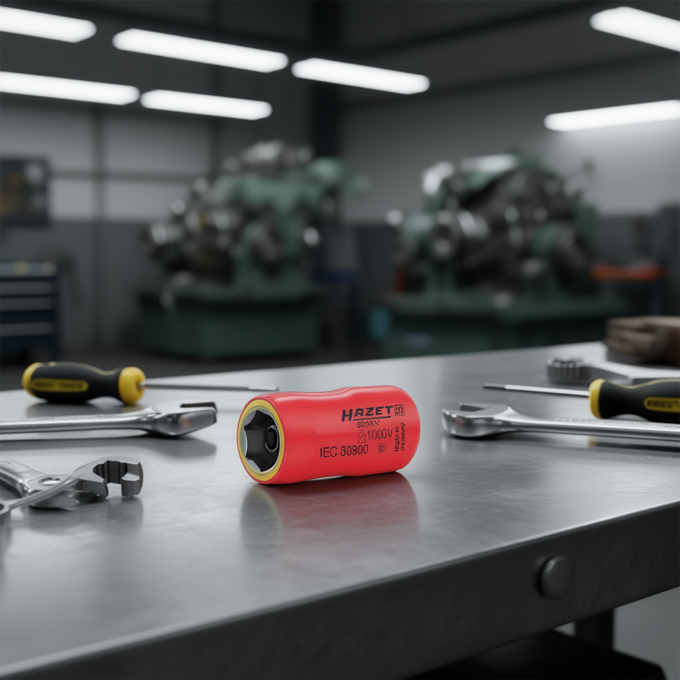 Llave de vaso hexagonal corta de 6 puntas Hazet, métrica, de 3/8'' con perfil de tracción y aislamiento protector de 1000V