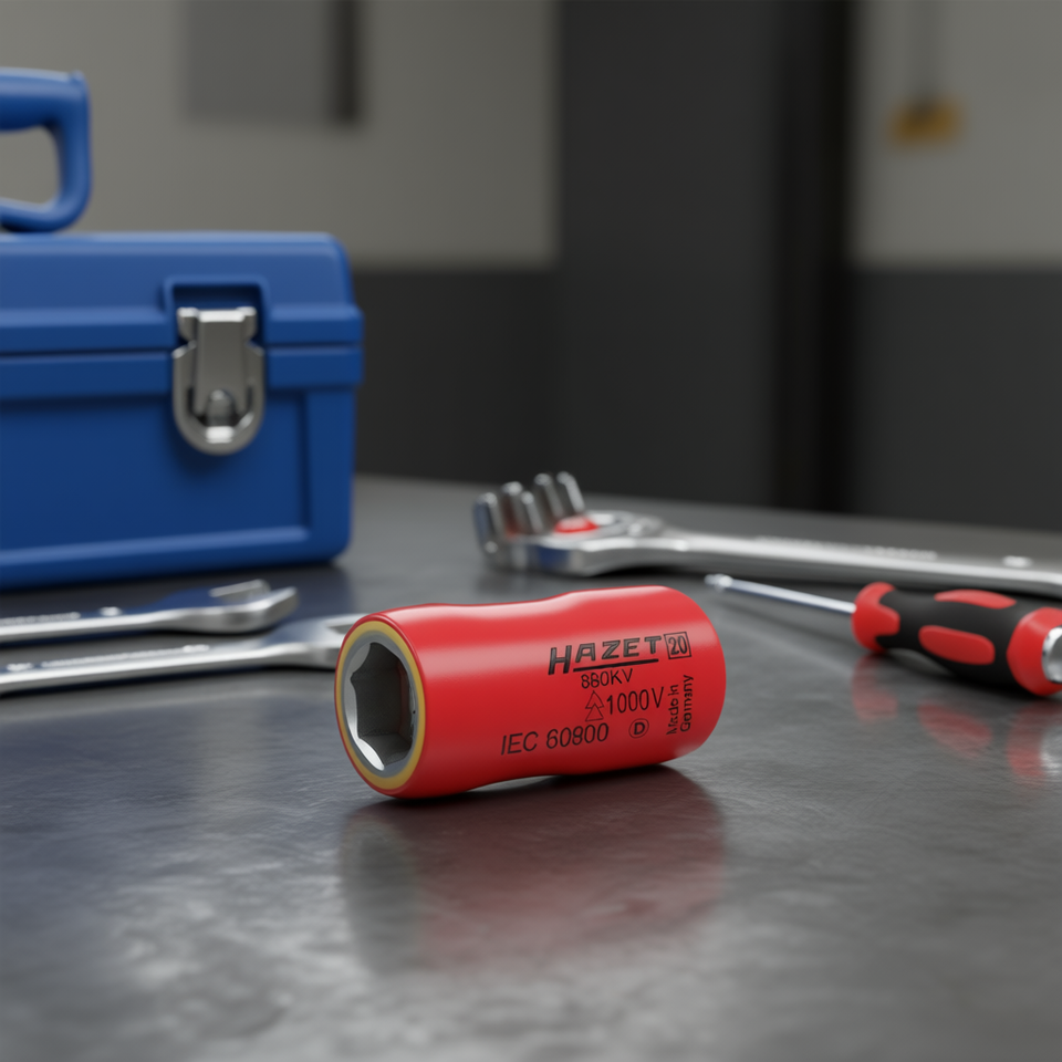 Llave de vaso hexagonal corta de 6 puntas Hazet, métrica, de 3/8'' con perfil de tracción y aislamiento protector de 1000V