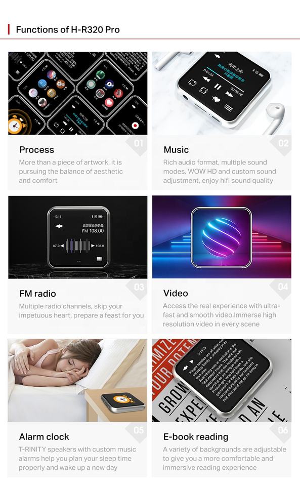 Función:Grabadora de voz, Lectura de libro electrónico, Radio FM