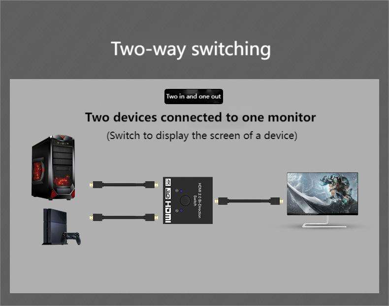 Hd-mi Splitter Dos entradas y una salida 2k * 4K AB Switch HD Computadora Audio y video Conversión bidireccional Pantalla dividida